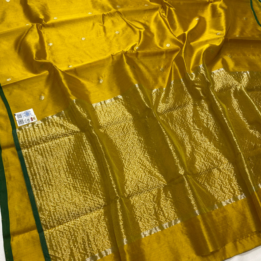 An ideal choice for weddings, festive celebrations, and special moments. Shop this royal Chanderi Handloom Pattu (pure silk by silk) saree now. Limited pieces only.